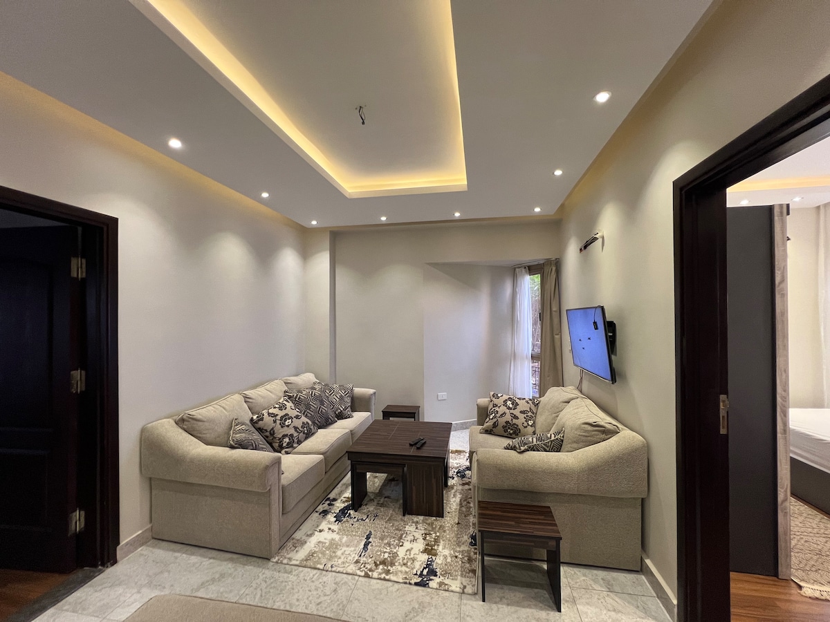 Affordable apartment newly fully finished and furnished in sheikh zayed city , Quality services available nearby. The apartment is located in beverly hills compound one of the class A compounds in Egypt. Surrounded by all needed facilities ( supermarket , pharmacy , cafe , restaurants, shopping malls ). Free access to Golds Gym during your stay. 30 minutes from the pyramids and egyptian museum. Enjoy a stylish experience at this centrally-located place.