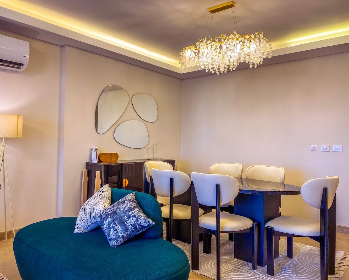 Enjoy a stylish experience at Welcome to your spacious family-only retreat in the heart of 6th October City! This modern 3-bedroom, 2-bathroom apartment is designed for comfort, relaxation, and convenience—perfect for families and business travelers who want a quiet, clean, and fully equipped stay. The Space 1 bedroom with a double bed 2 bedrooms with two 120cm beds each 2 full bathrooms with showers Bright living room with a 55” Smart TV Fully air-conditioned for year-round comfort
