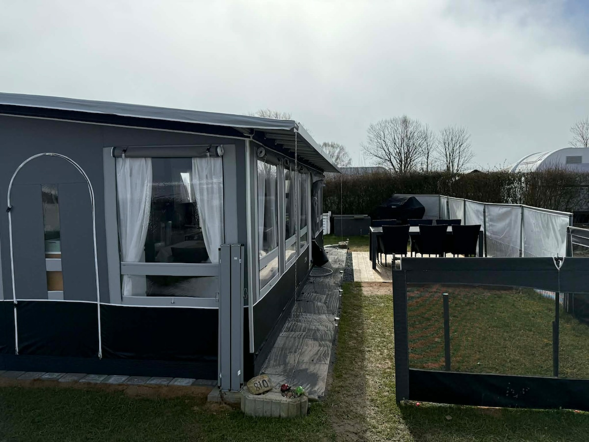 Stay in a cozy annex located in the garden next to our house in the middle of Assens town on the island Funen in the middle of Denmark. The annex contains a combined sleeping- and living room with a 140x200 bed, a small kitchen with a small fridge, a little oven, coffee-maschine and electric kettle and toilet with shower. There is room for 2 adults.