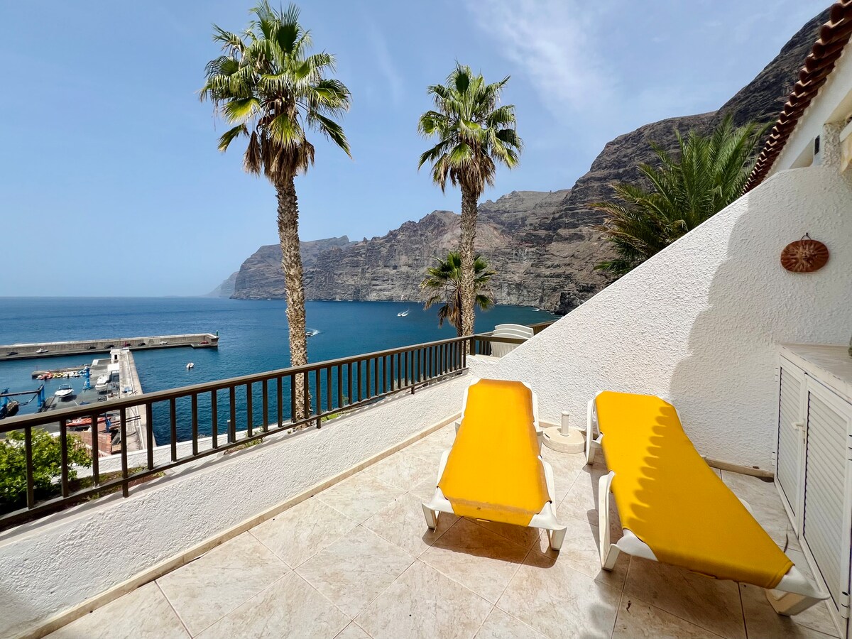 Zapraszamy do nowo wyremontowanego, eleganckiego apartamentu położonego nad samym oceanem w centrum uroczego miasteczka Los Gigantes. Nasz apartament został świeżo odnowiony w stylu Hampton, łączącym nadmorski klimat z nutą elegancji oraz dbałością o każdy detal. Niesamowitym atutem miejsca jest olbrzymi taras z zachwycającym widokiem na marinę oraz spektakularne klify Los Gigantes. To właśnie stąd można oglądać najpiękniejsze zachody słońca na całej wyspie, czując bryzę oceanu na twarzy