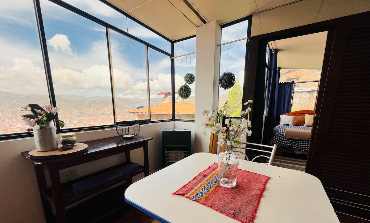 Cute Apartment with a beautiful view of Cusco. Located in the traditional neighborhood of San Blas,it's an ideal spot for couple-family. Righ here family-friendly activities, nightlife, interesting museums,lovely churches.We're just 10 min from the main square. You’ll love our space due to location, the comfy bed, the coziness,amazing view,home feeling.We can offer you AIRPORT PICKUP & TRANSFER,besides we also count with a reliable TRAVEL AGENCY with professional staff