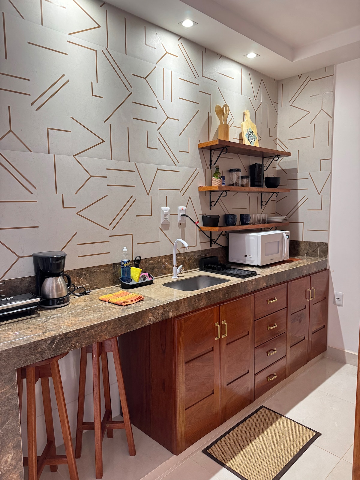 Modern and cozy ground-floor apartment designed for comfort and convenience. Built with thermoacoustic panels, ensuring a quiet and sophisticated environment. It offers 17m² of indoor space + 5m² of balcony with a shared laundry area. Tempered glass doors with reflective film (90% coverage), with curtains recommended at night for better privacy. Independent entrance, attached to the host’s house. Parking available upon request for an additional fee.