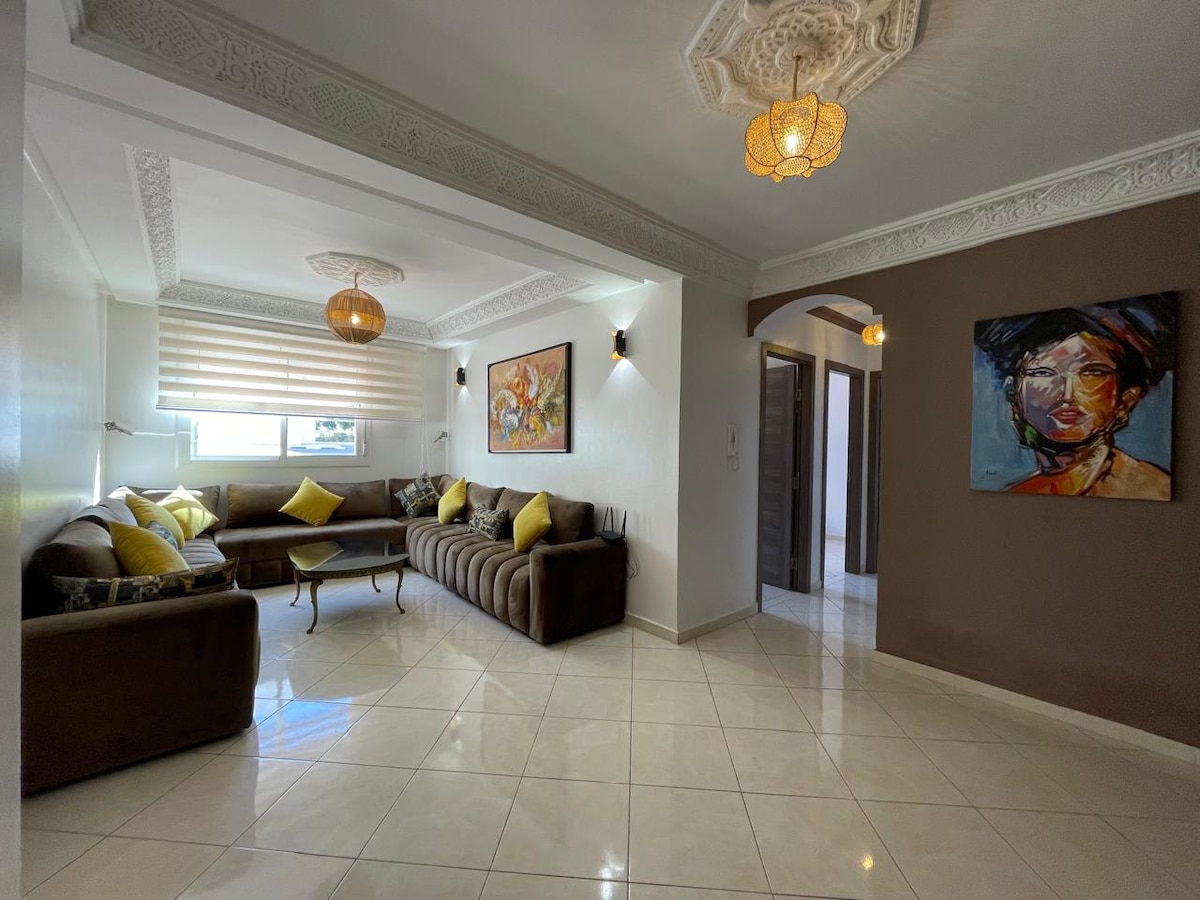 Sunny 1st-floor apartment in central Agadir, steps from cafés, shops, and a 10-minute walk to the beach. Enjoy a cozy living area with a 65'' TV, fast WiFi, and a full kitchen. We help you plan unforgettable experiences: camel rides, Agadir Sahara sunset & sandboarding, Paradise Valley trips, surf, skate, quad, jet ski, fishing & more. Airport transfer service available. ⚠️ Only registered guests are allowed, no outside visitors.