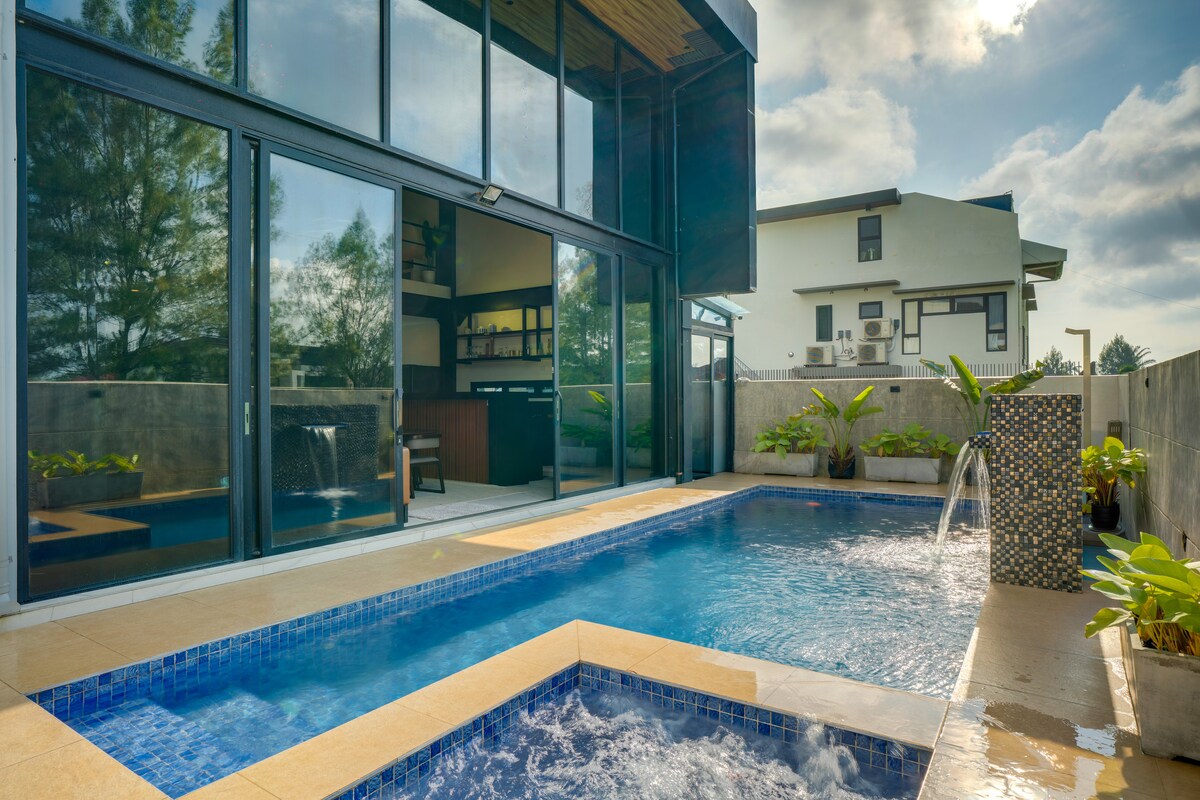 The newest luxurious and spacious vacation home stands out with its Insta-worthy mid-century modern design, perfectly located in the heart of Tagaytay, close to popular restaurants and landmarks. Two Pines Place takes pride in its amenities, spacious rooms, and ample common areas. Perfect for family gatherings and company outings. It features a thermal/heated pool with waterfalls for a relaxing swim that everyone can enjoy while being refreshed by the gentle cool breeze of Tagaytay.