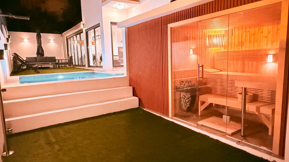 -Start the day with family breakfasts alfresco on the patio overlooking the sea at this stylish, white-walled hideaway with sleek wooden furniture. - Alternate between happy evening barbecues and taking relaxed strolls to local eateries. - The Villa is children safe and the pool is fenced for kids safety. -Trails through the hills, castles, and stunning landscapes are waiting for you! We have 1 more room (king bed and en suite bathroom). If you want to rent this 5th room, the price is €45/night