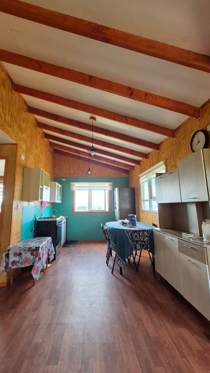 Beautiful cabin in the middle of rural Chiloé. The cabin is located specifically in Teguel Bajo, a small community 4.5 km from the city of Dalcahue. It is a place in the middle of the countryside, surrounded by native forests, a few meters from the Teguel Wetland and with a beautiful view of the Dalcahue canal. On the first floor there is a large space where the kitchen, living room, dining room and hot tub are located. The main bedroom with a double bed is in the loft.