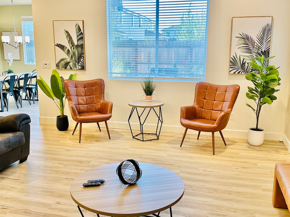 Welcome to your private Livermore retreat. A spacious 5-bedroom, 3.5-bathroom home designed for relaxation, entertaining, and making memories. Enjoy a resort-style pool and spa, outdoor kitchen with bar, firepit lounge, wine bar, and gourmet kitchen. Minutes to Livermore Valley wineries, downtown dining, Premium Outlets & Del Valle Regional Park, this home blends comfort and luxury in one unforgettable stay.