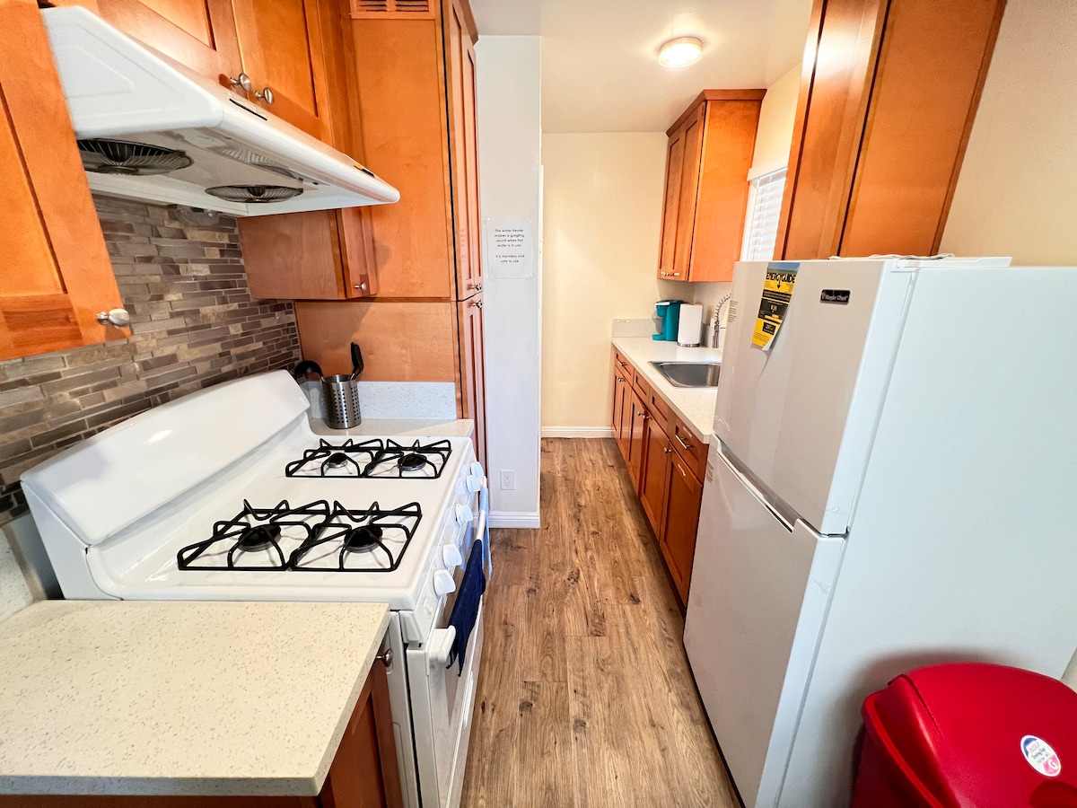 This newly renovated duplex house is in a prime location and features 2 bedroom and 1 bathroom, king-size bed. The house has a full kitchen and a private laundry room, and each room is AC and heated. Speedy WiFi internet. There is also a free parking space available. private entrances with a digital door lock for self-check-in, and it's just a short 15-minute drive to Downtown LA. Quick and easy freeway access is available through 10 & 710 We hire a professional cleaning team to clean the unit.