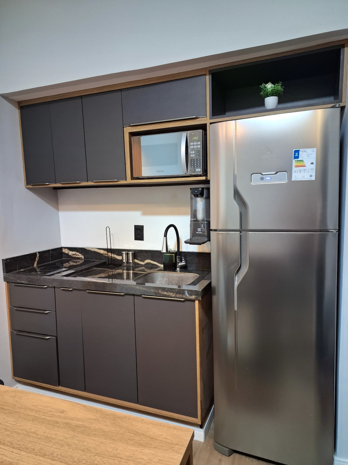 Cozy 22m² studio on the 19th floor, in the Historic Center of Manaus, next to the Amazonas Theater. It has a double tatami bed, a hammock, TV (not smart), Wi-Fi internet, a pantry with utensils and a private bathroom. The highlight is the incredible view of the Rio Negro and the sunset. Ideal for those who want to stay in the heart of the city and do everything on foot. Note: the apartment does not have an electric shower (bath at room temperature).