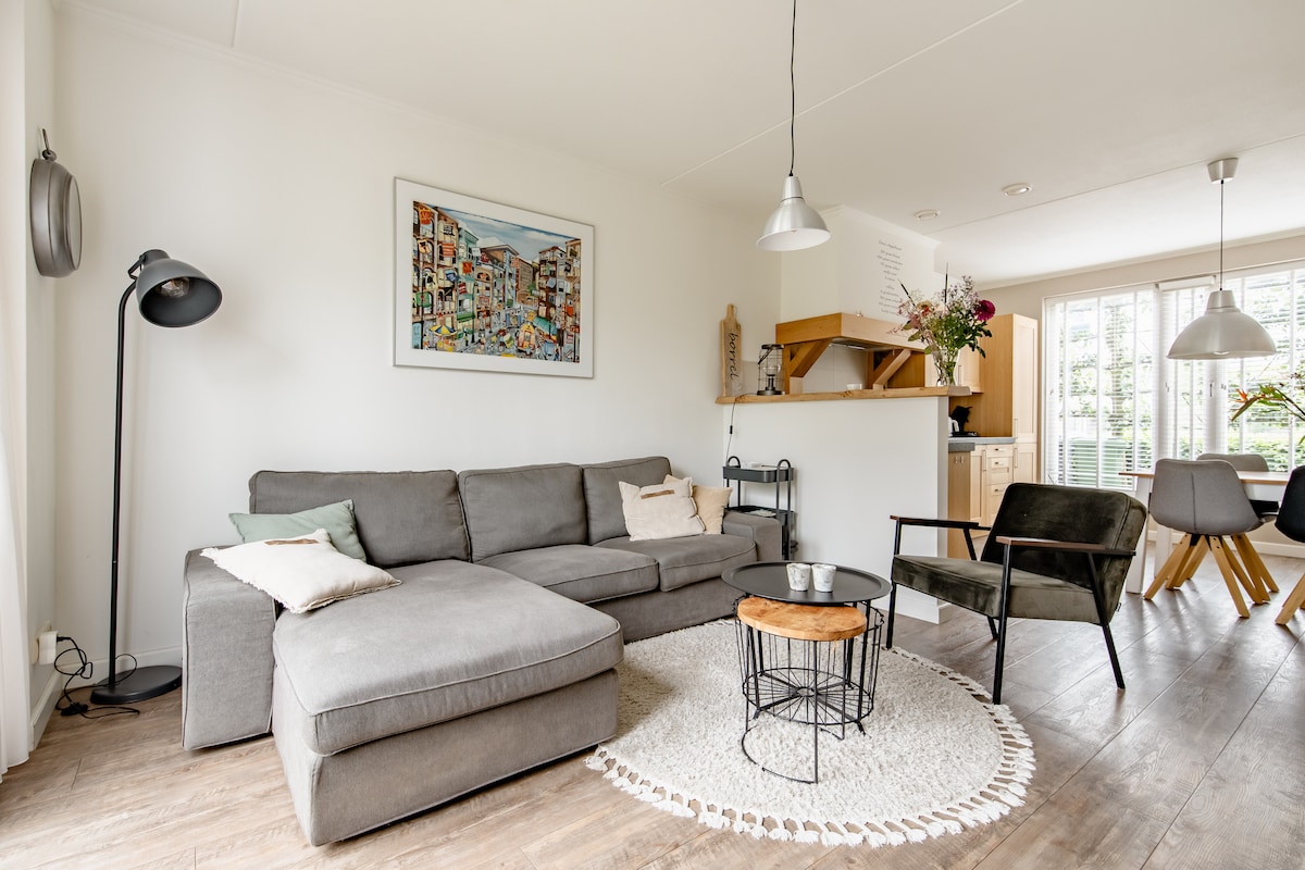 Nice home with all the comforts. Entrance with toilet, living room with kitchen equipped with oven, coffee maker, Senseo coffee maker, kettle, refrigerator, dishwasher, stove, extractor hood and dining table. On the garden side, there is a cozy sitting area with French doors. Garden has a gazebo with seating area. House is equipped with TV and WiFi throughout the house. Furthermore, Dutch law applies, so the use of drugs is not allowed, the house is NON-SMOKING!
