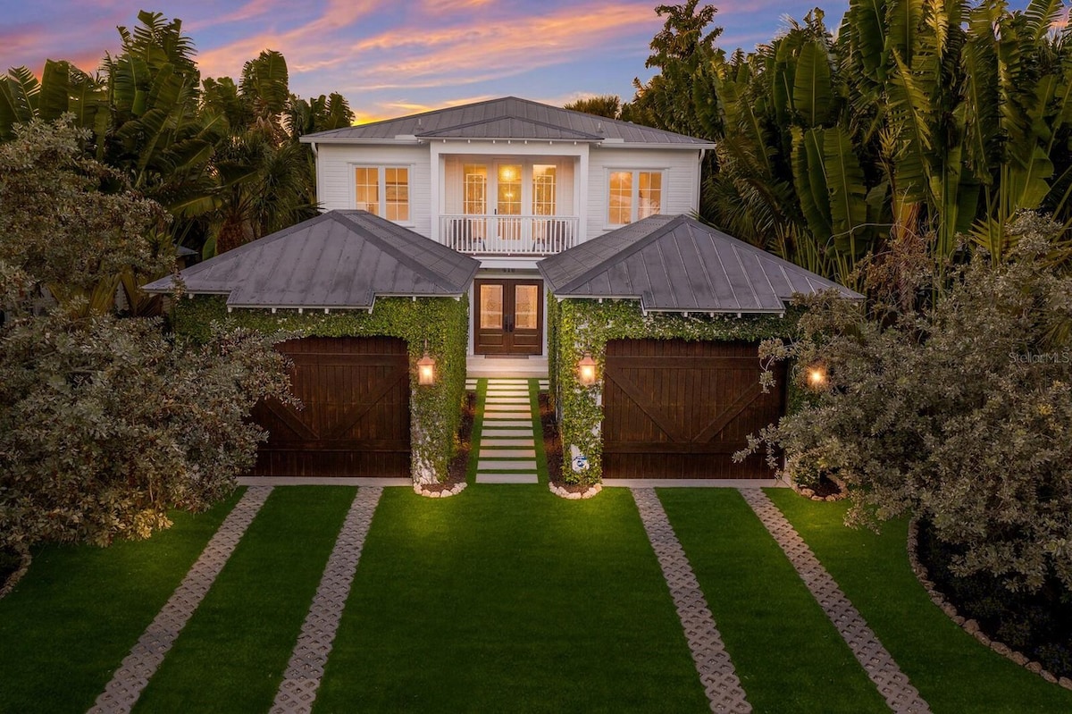 Our modern yet beachy retreat is the perfect oasis on the North end of Anna Maria Island w/breathtaking panoramic views of Tampa Bay & the iconic Skyway Bridge. The backyard oasis features a refreshing saltwater pool & fully fenced backyard, complete w/artificial turf & outdoor shower. Just steps away, you'll find full access to a stunning white sandy beach & the crystal-clear waters of Tampa Bay! Conveniences have been carefully considered, creating the most ideal vacation destination!