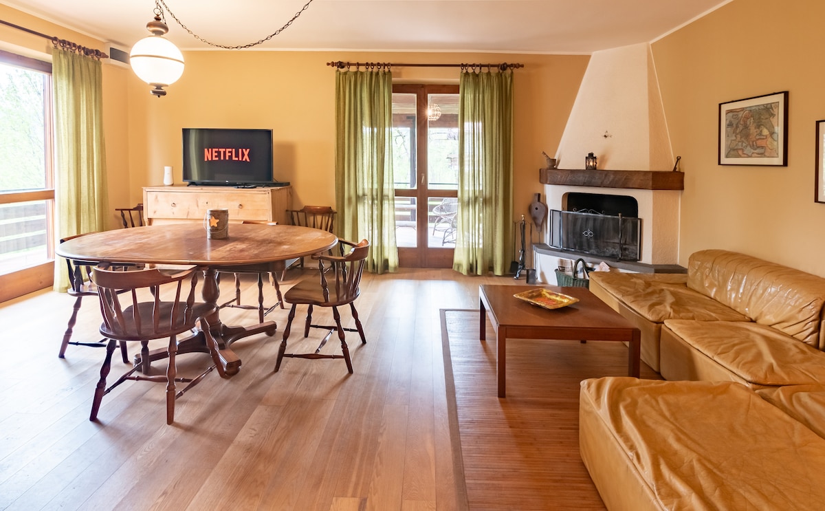 This cottage, nestled in the woods, has spectacular views of the Dolomites from the large glass window and long terrace. The setting is the Corte delle Dolomiti village, in Borca di Cadore, where you can experience the pleasure of the silence of nature with all amenities just a 2-minute drive away! The beautiful ski slopes of Cortina are a 15-minute drive away.
