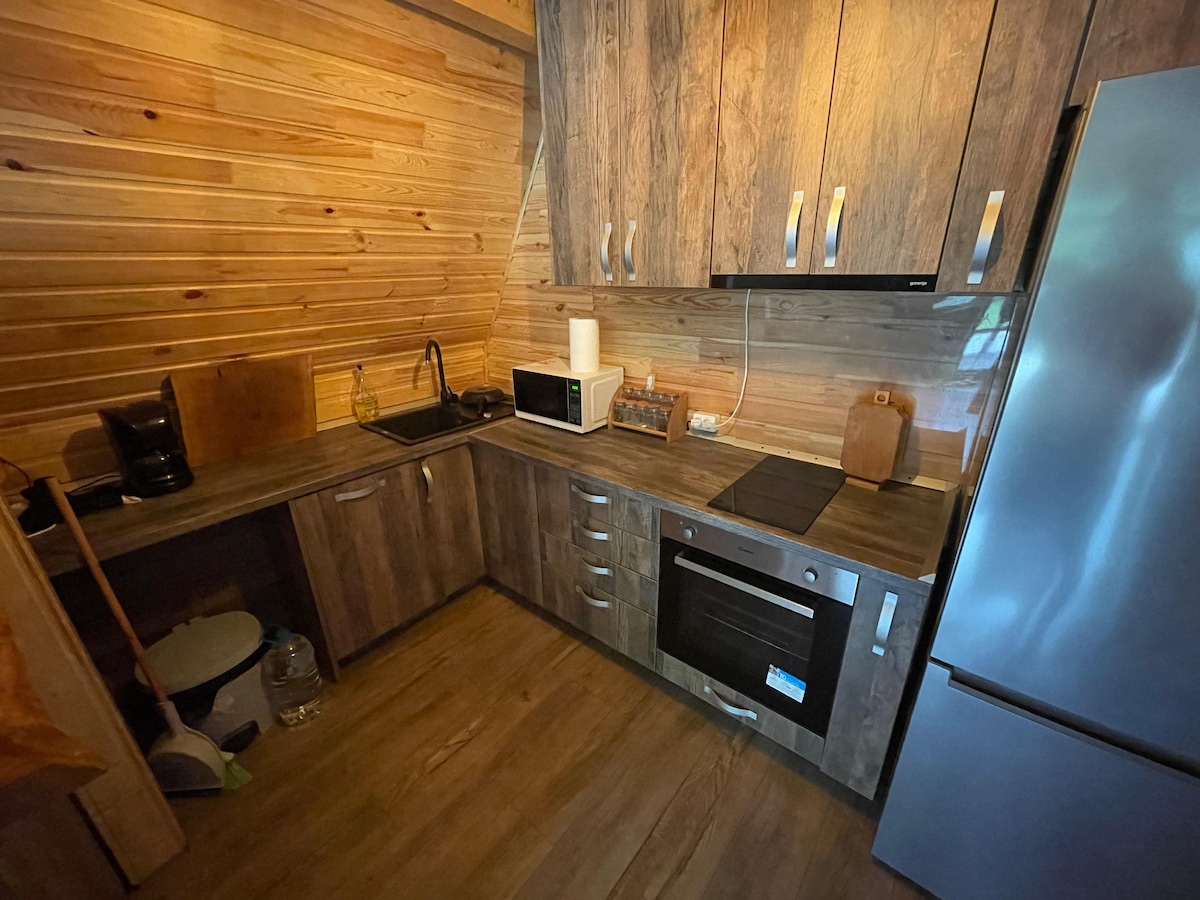 Located near the forest, on the main road to the Negoiu Peak, the second largest mountain in Romania, this little tiny-house style chalet is the best option for a cozy romantic retreat in nature. Inside, you will find brand new luxurious furniture and utilities. The large windows will flood your living space with natural light and the curtains will provide enough shade in case you don`t like the light. Outside, there is a fireplace from which you can admire the peaks of the mountains.