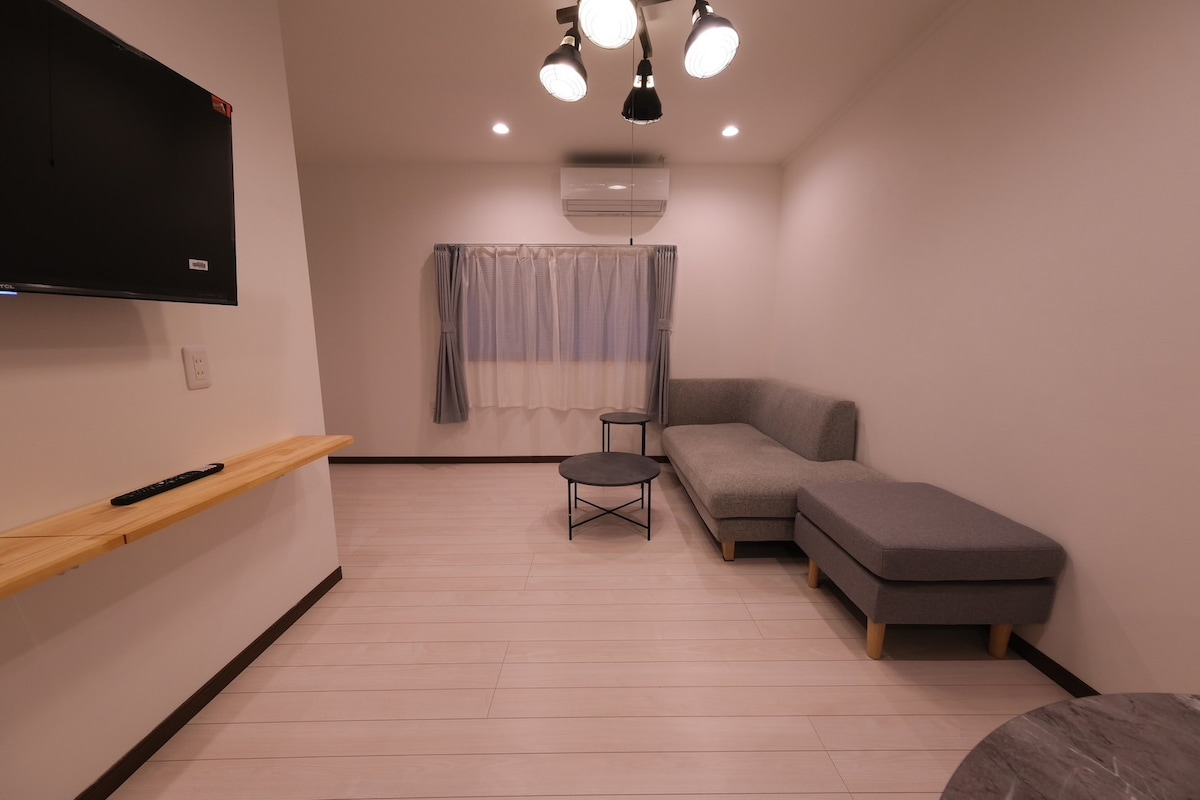 Living room with a balcony where you can spend time with family and friends, features a full kitchen. Located between Kitakyushu Airport & tourist spots, it's perfect for a long stay as a base for your Kitakyushu trip. ・Kitakyushu Airport 20 mins by car ・Kokura Station 20 mins by car ・Moji Station 25 mins by car ・Free parking available for one car * Since it's located along a major road, you may hear car noise. If you are sensitive to noise when sleeping, please consider this before booking.