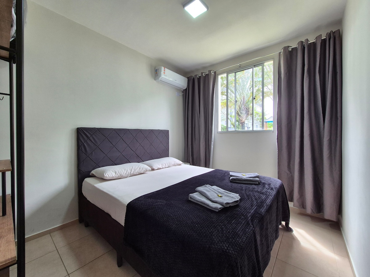 Newly finished apartment, all planned and in excellent taste. It easily accommodates 2 families, who seek to be as well or better accommodated than in their own homes. All rooms are air-conditioned, and all appliances are available and new. Barbecue grill inside the unit. The condominium has a playground, fireplace, outdoor barbecue, among other facilities and a 24-hour remote concierge for security Within 1 km you have a pharmacy, bakery, market, convenience store, restaurants and other shops.