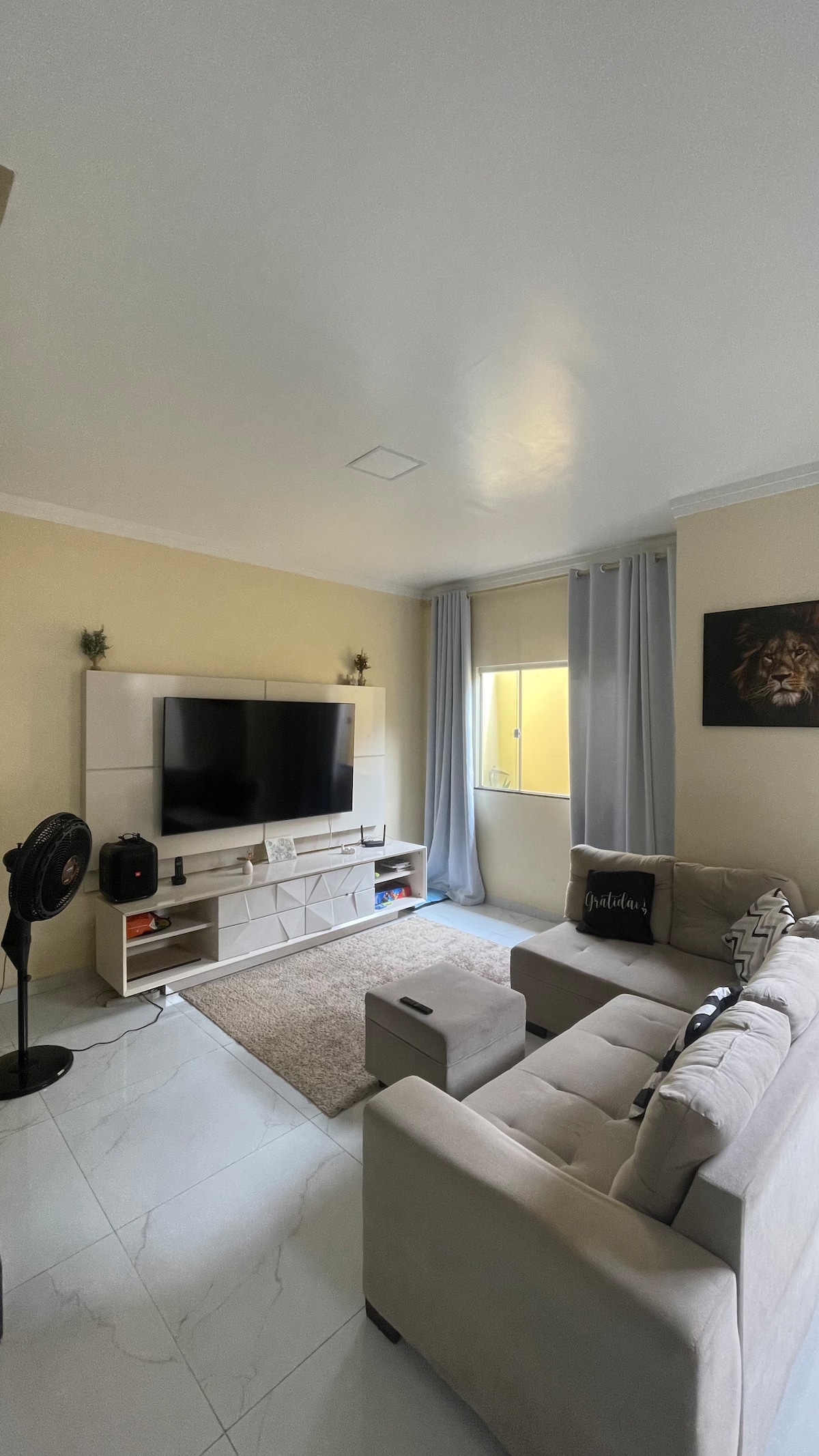 Casa Felicidade! A cozy retreat with unique decor, inspired by Amazonian culture. Fully air-conditioned! • Large living room with 58” TV • 1 bedroom with double bed • 1 bedroom with 2 single beds • Mezzanine: TV, double sofa bed • 2 bathrooms • Equipped kitchen. • Fast Wi-Fi and streaming Located in the heart of Belém, close to restaurants, cafes, shopping malls and tourist attractions. Experience the best of the Amazon with comfort and exclusivity. Book now and make your stay unforgettable.