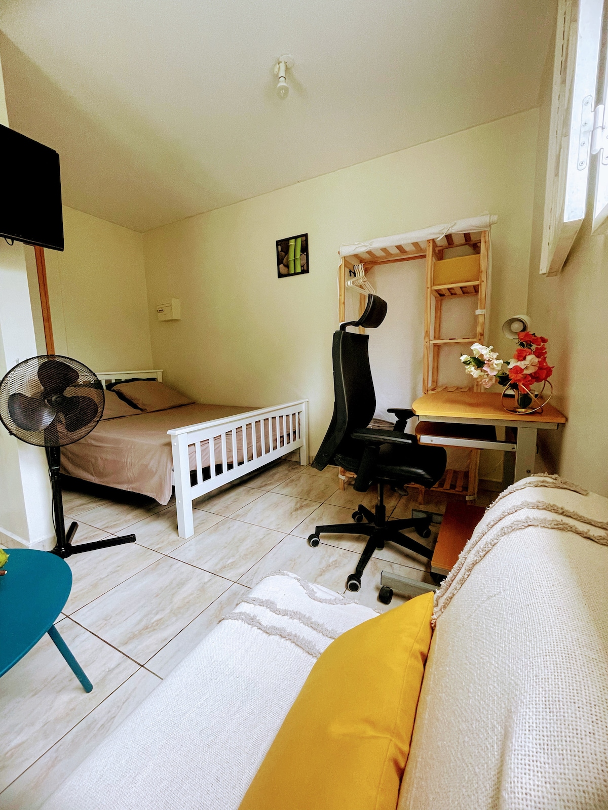 This peaceful home offers a relaxing stay for the whole family. Decide the Kaz'a bastè (Basse terre en Creole) within the historical Carmel district. Located 2 steps from the city center, the studio is an outbuilding of a typical Creole/colonial style property. The studio is new, and built as we would have thought for us: - 2 rooms including 1 bedroom and 1 living room/dining room/ kitchen - 1 full bathroom - Wooden terrace with spa (new), private garden All air-conditioned