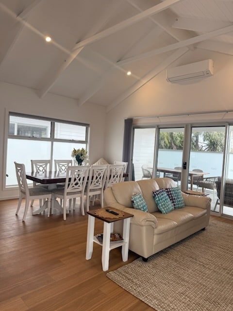 Affordable, Gorgeous, Seafront, Central - the studio is part of a 1928 blue bungalow overlooking the jetty and foreshore playground. Its private - stands alone from the main house and is fully self contained. A creative space providing comfortable and cosy seaside accommodation for small groups. There is a seperate bedroom, living area with comfy fold out couch, dining table and kitchenette under the main roof. Plus outdoor patio with undercover BBQ area and semi detached bathroom. It's Unique!