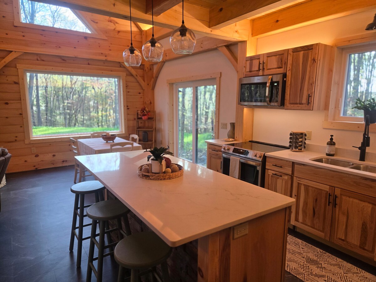 Leave the bustle behind for the whispering oaks and calming embrace of our renovated Laurel Highlands chalet. Enjoy grilling on the deck, sitting around the fire ring, watching wildlife in the woods, or reconnecting with friends and family inside the cozy chalet. Shrouded by towering oak trees, the chalet is quiet and feels secluded. Yet, it’s only minutes away from Ohiopyle, Seven Springs, Fallingwater, and other popular attractions in the Laurel Highlands.