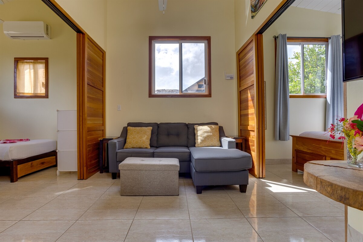 Serenity by the Sea is a non-smoking (if you are a cigarette smoker please do not book here), private studio beach front cottage off the Placencia Sidewalk in the heart of Placencia Village. Its your tropical home away from home and is only 80 ft from the waters edge. Its location makes the perfect getaway for couples or a few close friends. It sleeps two people comfortably with a queen size bed, while the full size futon could sleep another person. Your little piece of paradise awaits you....