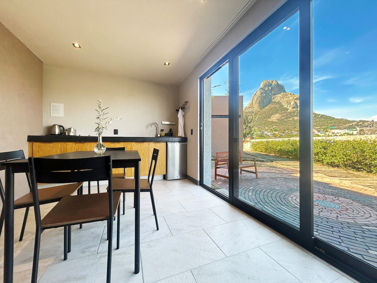 Relax in this quiet and elegant suite with access to the entire house so you can enjoy privacy, comfort, design and a unique view of Peña de Bernal in a single space. Located on an exclusive hill, inside a private community is Villa Casa Loma that we have now chosen to open its doors for couples looking to enjoy the unbeatable services of a house.