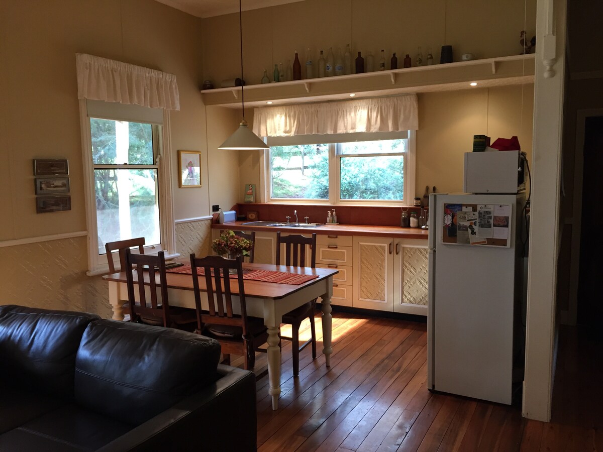 Newly Renovated Interior. Lge Main Bedroom with King Bed, a 42"TV and Workspace. A Queen Bedroom & Bunk Bedroom. Ample Robe Space. Sleeps 6. Fully Appointed, Functional Kitchen & Laundry. Super Comfy Lounge, 60" TV. Free WI FI & Netflix. Split Air Con, Fans in Bedrooms & Living. Relax on Front Porch, Entertain Undercover in the Lge Secure Backyard. 1km, CBD and Restaurant Hotel Cafe precinct. 1km to Wod. Plaza, Sumsion Gardens & Playground, and Wod. Tennis Centre. Children welcome. Dogs also :)