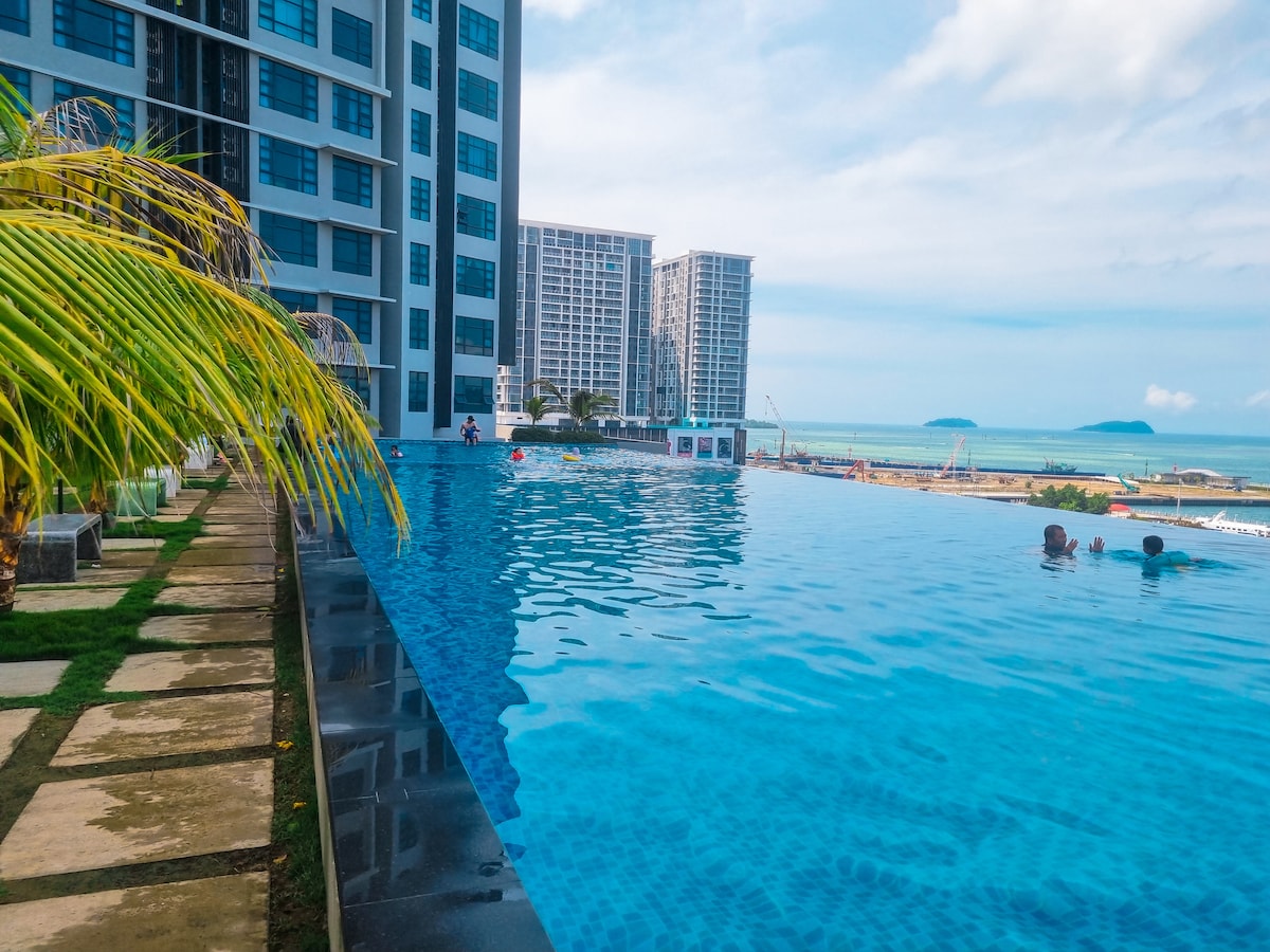 🌴 한국인이 관리하는 깨끗하고 모던한 가족형 숙소 코타키나발루에서 가장 최근에 지어진 신축건물로 보안이 철저한 숙소로 가족 단위 여행객과 휴양형 여행자 모두에게 선호 하는 숙소입니다. 📍 위치 제셀톤 포인트 선착장에서 도보 약 3분 거리에 위치해 있습니다. 섬투어를 비롯한 각종 해양 액티비티의 출발지와 가까워 이동이 매우 편리하며, 코타키나발루 시내 주요 쇼핑몰과 맛집, 마사지숍 등이 인근에 있어 자유여행, 가족여행, 커플여행 모두에 적합한 최적의 입지입니다. 공항에서도 차량으로 약 15분 내외 거리로 접근성이 좋습니다. 🏠 숙소 안내 최대 6인까지 투숙 가족 단위 여행객에게 특히 인기 있는 객실 타입입니다. 침실 2개 + 거실 + 주방 + 욕실2 세탁기 및 건조대 구비 기본 조리도구와 식기류 제공 🌇 인피니티풀 숙소 내 건물에는 코타키나발루 바다를 한눈에 조망할 수 있는 인피니티 수영장이 마련되어 있습니다.