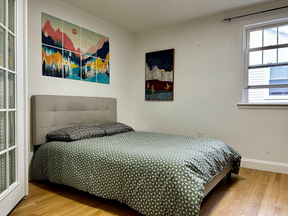 Spacious & thoughtfully designed 2BR condo in East Boston, tucked in a vibrant local community. Just a 2-minute walk to the train with a 1-stop ride to downtown and the airport — perfect for exploring Boston. Walk 5 minutes to the Waterfront, the Greenway, & awesome local bites. Enjoy heated bathroom floors, a spa-style shower, and a private backyard with a fire pit. Dedicated work-station and fast Wi-Fi for remote work. This rare gem has it all —comfort, convenience, and a true local experience