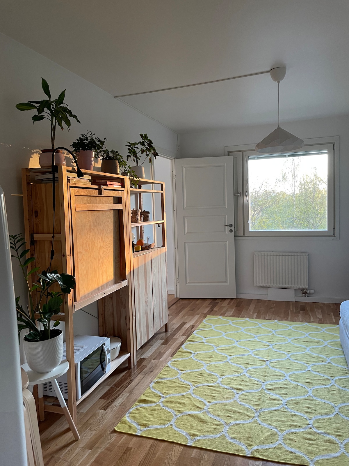 A very small studio with own entrance on the bottom floor of our house in a quiet area, close to Stockholm city (15 min by subway.) Equipped kitchen The studio is in the basement. My family with childen live in the house, so you might hear us moving around. A 10 min walk to the subway stations Svedmyra, green line19. Close by, walking distance, a big and a smaller supermarket, parks, restaurants and walking areas. Own entrance with code lock. No pets. Welcome.