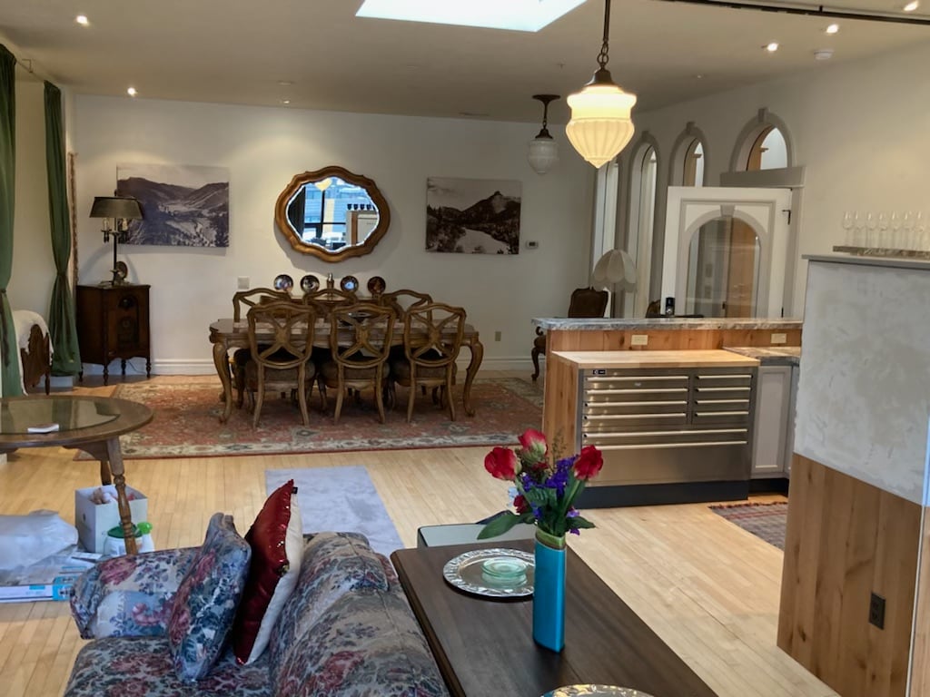 Our fun & sun-filled Loft has a private entrance, a well-stocked full kitchen, a shower/tub, an enclosed toilet area, a queen & a narrow twin bed, AC, TV with streaming . . . & an indoor swing! There is a BBQ & an outdoor dining table + two bikes, snow shoes and a full washer/dryer & a 2nd half bath in the garage. We have driveway parking for Loft guests, and are just blocks from the University & historic downtown . . . & BTW, we also AirBnB the main house: airbnb.com/h/montana-mediterranean