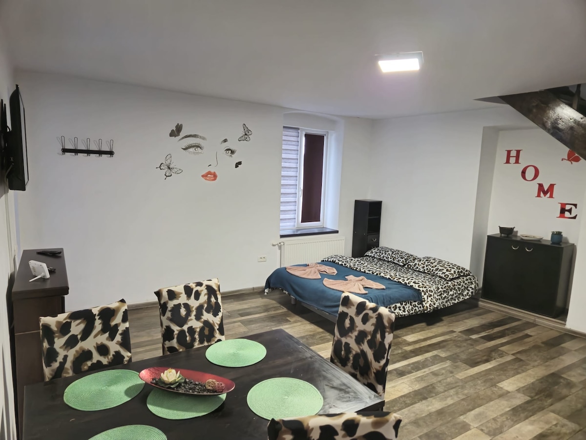 We welcome you to our new charming apartment located in the "youngest" part of Brasov. Fully furnished, a bedroom with a generous king size bed and a cozy window seat, a retro style bathroom with walk-in shower, a living room with bar, fireplace, one comfortable sofa and a fully equipped kitchen, in open space. The apartment is at 5 minutes walk to Coresi Shopping Center and 20 minutes by bus to the Old City Center (4 km distance). The train station is at 15 minutes by bus (2 km).