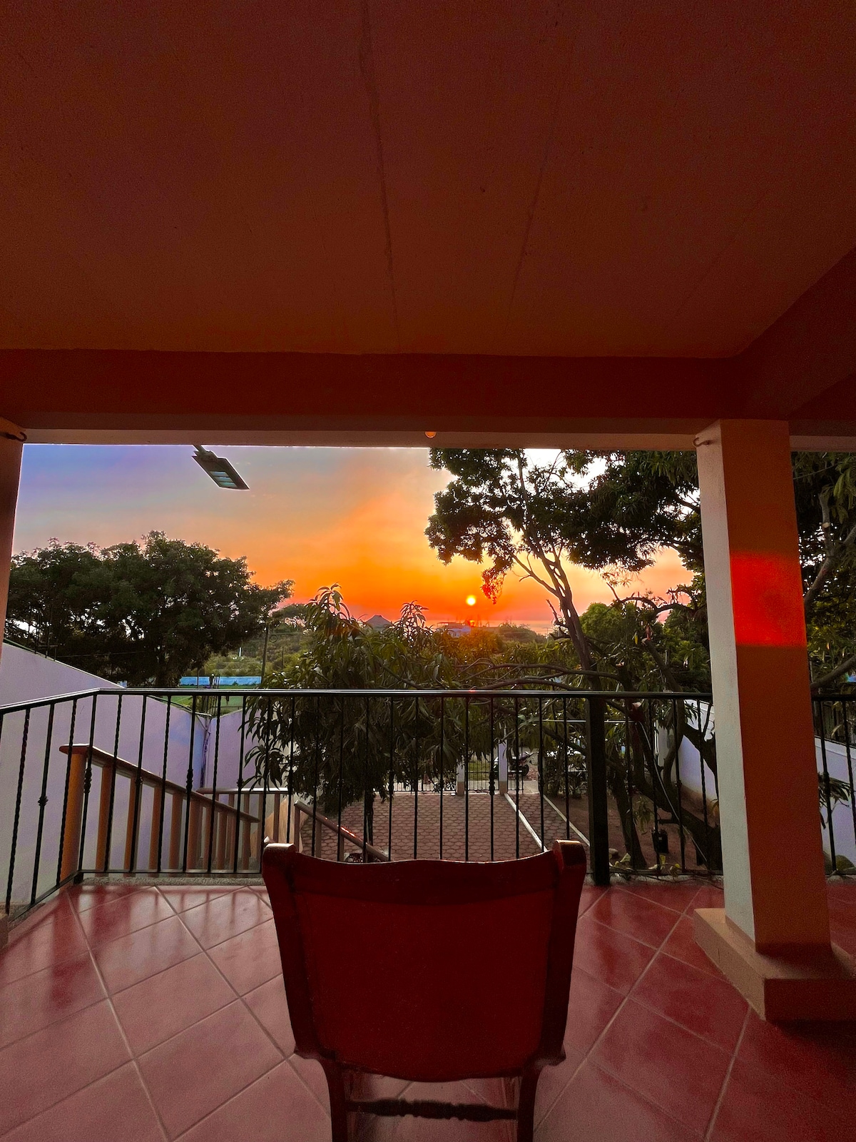 Depa amplio y luminoso en planta alta con 2 camas queen súper cómodas, A/C en la recámara y ventiladores en sala y cocina. Cuenta con cocina equipada, salita acogedora y balcón con vista a palmeras. Estás a solo 2 min de la playa y a 1 min de cafés, tiendas y restaurantes. Disfruta el patio compartido con hamacas, árboles frutales, asador y área de pesas artesanales. Ideal para relajarte, surfear o trabajar remoto con buena vibra. 🌴