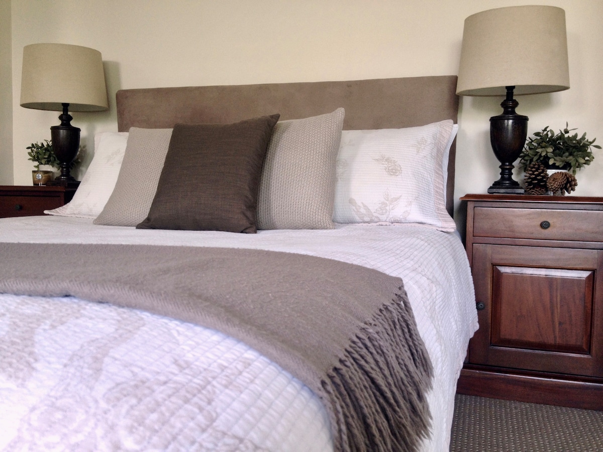 The bedroom has built-in robes, queen size bed, desk and chair and cot if required. The living room is tastefully furnished with artwork, large open lounge with 2 comfortable leather lounges, coffee table, TV cable and recorder, with lots of extras in a fully equipped kitchen, dining table and 4 chairs, extra large refrigerator, reverse cycle air-conditioning and heating in both living room and bedroom, plus ceiling fans in each room.