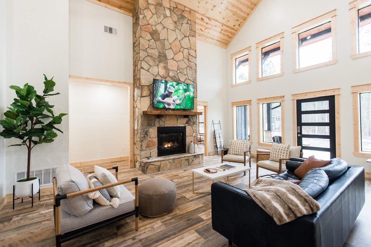 Brand new cabin just ~12 miles from Broken Bow Lake and Cedar Creek Golf Course! Less than a mile from ATV trails. This cabin is conveniently located yet nestled adjacent to the Ouachita National Forest. Over 2,300 sq ft and sleeps up to eight people! Plenty of space to kick back and relax in privacy. 5 HDTVs with live TV channels, fast wifi, 30-ft ceilings, indoor & outdoor fireplaces, hot tub, and firepit garden. Hot tub on private porch overlooking a quiet wooded setting.