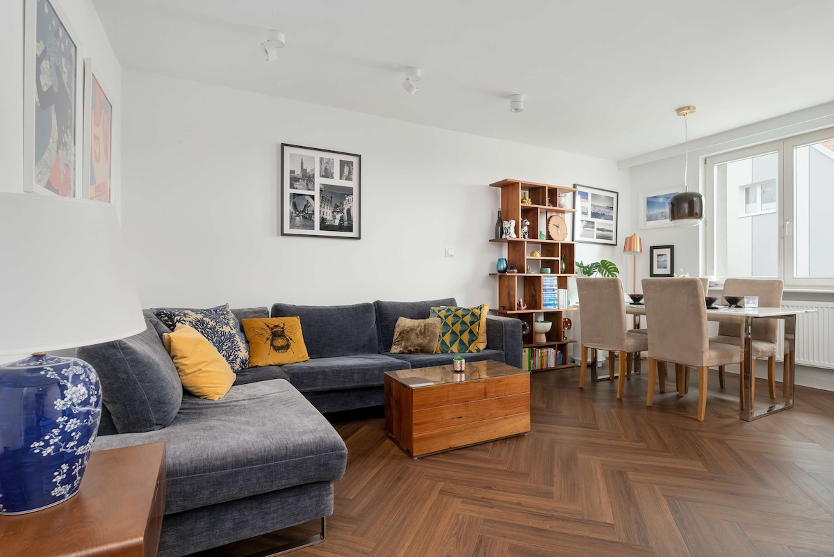 Can you combine postcard-perfect views, high-end comfort, and a proper dose of relaxation after a full day of exploring the city? Yes, you can – and you’ll find it all on the top floor of the modern building at Chmielna 63, where comfort is not just a luxury, but a necessity. This stylish penthouse is more than just a place to sleep- it's a versatile space that can cater to your unique needs. Plus, it features a spacious private terrace with a breathtaking view of Gdańsk’s Old Town skyline.