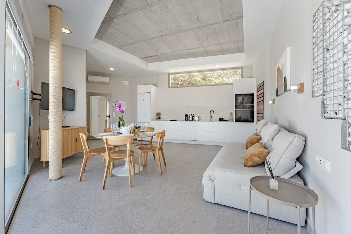 We have the perfect holiday spot for you!! Located in the Costa Adeje, San Eugenio area is this chic and stylish 2 bedroom villa with a private pool. There is an open-plan kitchen-living área that boasts a very cozy atmosphere. You can enjoy delicious meals on the breakfast bar and also get comfortable on the sofa in front of the 46 inches Smart TV. The exterior of the property is situated in a slightly elevated position which results in sea views from the terrace. Family discount available.