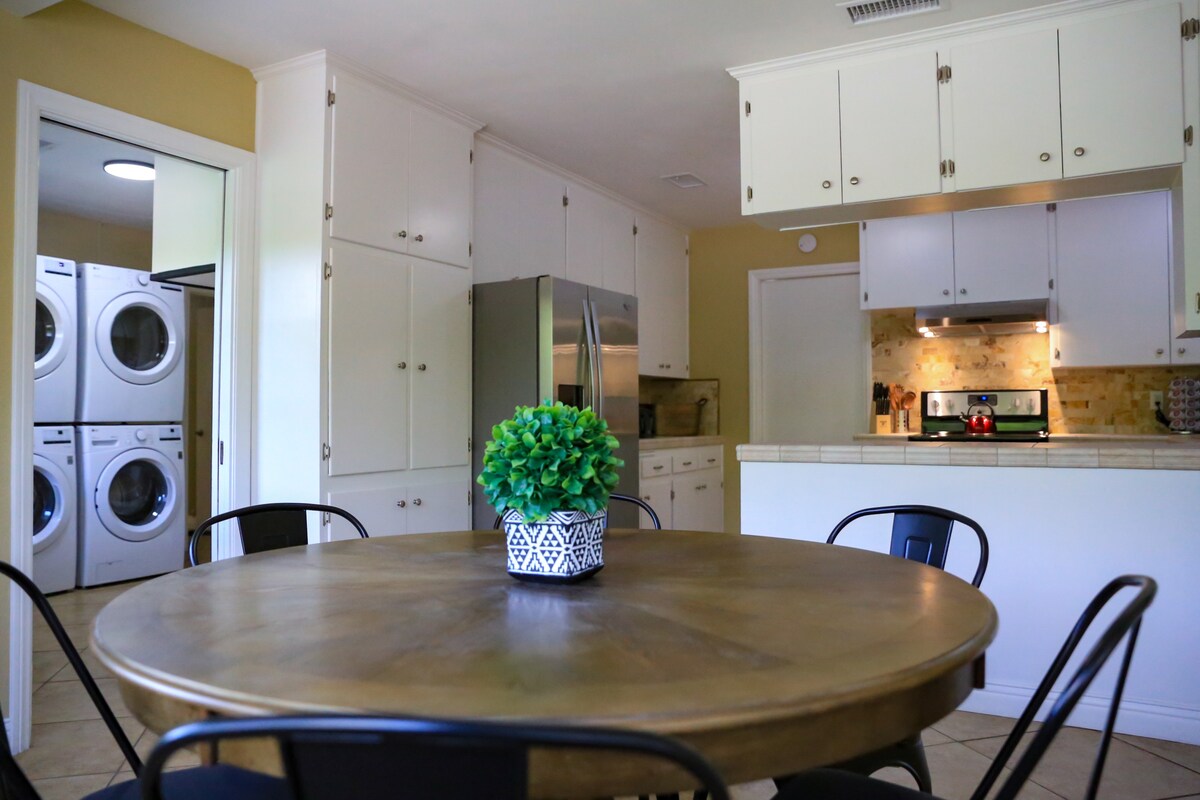 Celebrate your time off in our happy, family-friendly home. This four-bedroom single-story house boasts an AMAZING kitchen, an expansive pet-friendly backyard, a refreshing swimming pool, and beautifully decorated living room and bedroom spaces. The water pressure in both of the home's walk-in showers will blow your mind and everyone will want to try out the remote-controlled bidet in the Master Bathroom. We look forward to hosting you and yours!