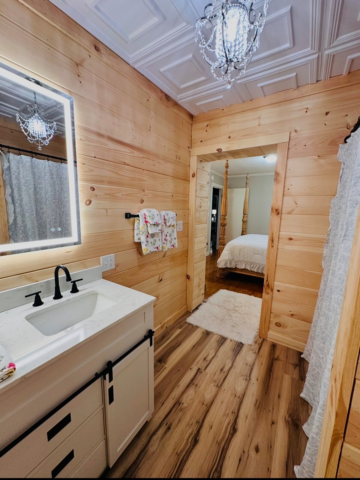 Enjoy a secluded stay in our one of a kind, luxurious log cabin treehouse. The treehouse offers 2 bedrooms, the master bedroom on the main floor with a rock shower and the loft bedroom with a half bath. The treehouse has a full wrap around porch with jacuzzi tub overlooking a spring branch and fire pit. Enjoy the outdoor shower with a 16” rainfall shower head under the treehouse next to the spring branch. Our gravel road welcomes you to a cozy home in the trees.