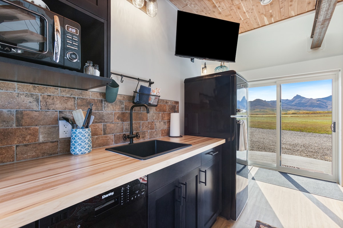 The Cowboy Suite is a thoughtfully designed retreat with rustic charm, just minutes from Waterton. Whether you’ve been adventuring or simply escaping it all, this cozy space invites you to slow down and unwind. Inside, you’ll find cozy comforts and warm details. After a day of exploring, settle in for a movie night on your own projector screen. A rainfall shower adds a calming rhythm, making even quiet moments feel restorative. This is a place to pause, relax, and truly escape.