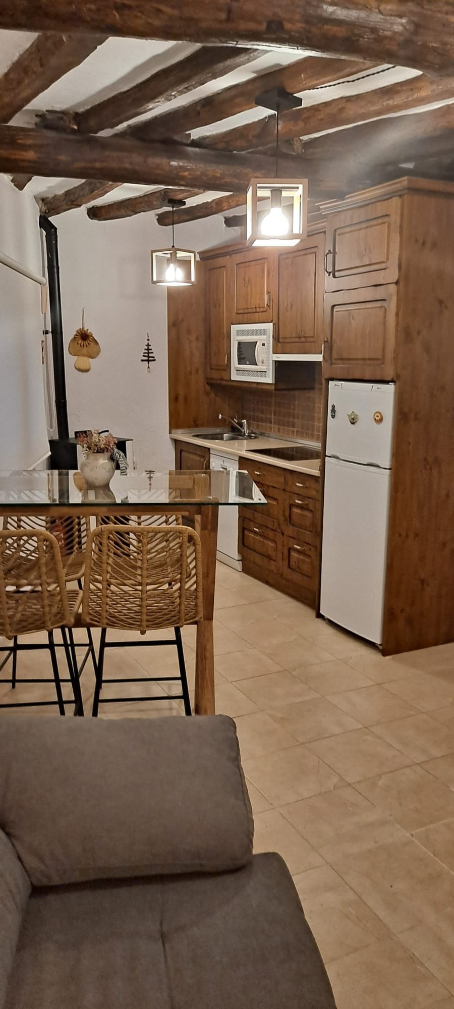 The four-story rural accommodation is a charming structure that combines comfort with rustic charm. Each apartment offers a unique guest experience, with a variety of amenities and stunning views. Fully renovated and equipped with everything you need for an excellent stay that invites you to relax and enjoy nature. In addition to the kitchen, guests will find a spacious, beautifully decorated dining room. Here, you can enjoy your meals in a cozy and elegant atmosphere, with room for the whole family or group of friends. This charming rural accommodation offers three cozy rooms, each designed to provide comfort and rest to guests. Each room is tastefully decorated, combining rustic elements with modern touches to create a warm and cozy atmosphere. The bathroom is fully equipped. In addition, to ensure the comfort of guests during the colder months, it is equipped with a pellet stove, which provides cozy and pleasant warmth throughout the stay. Very bright, all exterior and with a balcony overlooking the village and the incredible mountains. The living room is furnished with comfortable sofas and armchairs, perfect for resting after a day of exploring nature.