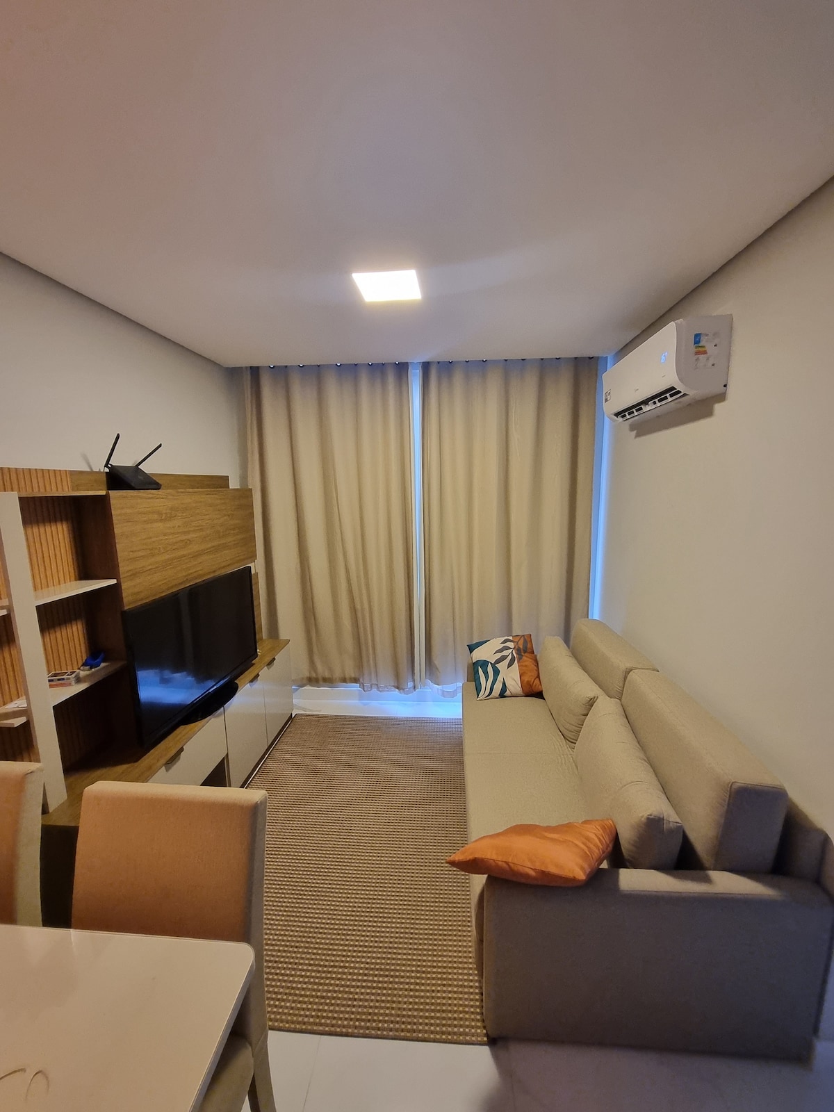 Relax in this calm and stylish space, 1-bedroom apartment with bathroom and parking, complete, no need to bring anything, Wi-Fi, coffee maker, smart TVs, washer and dryer, queen-size bed, towels and bed linen, etc... Wonderful apartment in Navegantes, with a terrace in the building overlooking the sea, mountains and lake for that day's leisure. With a gym and Rooftop access. No!!!! Reservations are not allowed, nor is the use of the SPA and Party Room for tenants !!!!