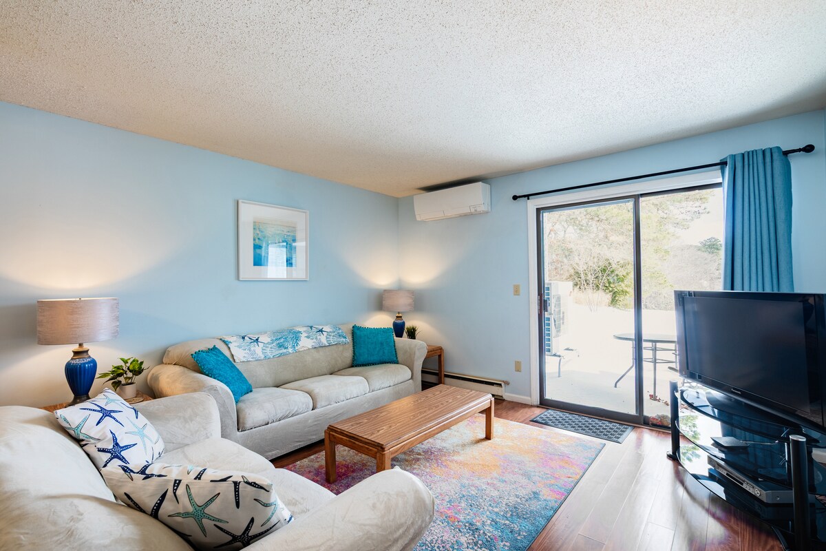Funky studio (Unit #1) only 175 yards from a white sand beach on Nantucket Sound. Soak up the sun at the beach, relax by the pool or enjoy a relaxing cocktail on your own private patio. This studio is equipped with a fridge, microwave and gas stove as well as a fully stocked kitchenette and cable/Roku TV. A futon couch offers extra sleeping space, if needed. Outside, enjoy a natural gas grill. Walk or bike to multiple restaurants, ice cream shops and all the amenities Dennis Port has to offer.