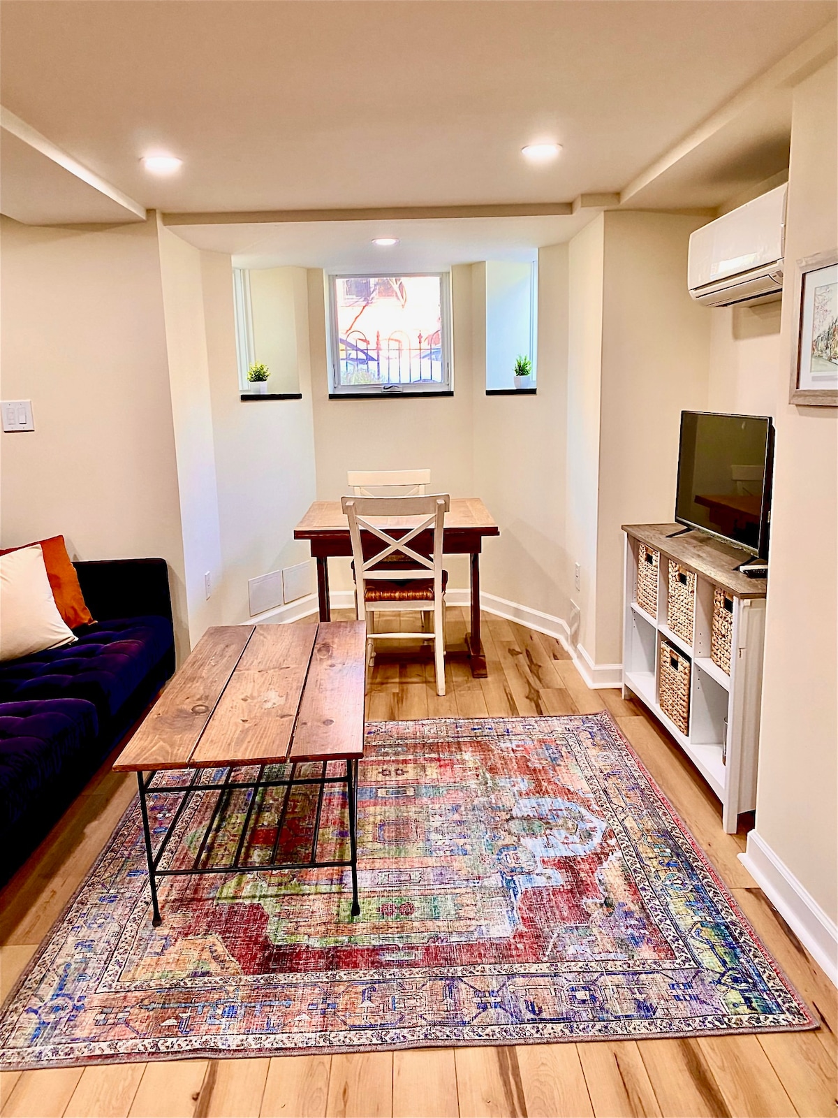 Located just 1 block west of Lincoln Park (closer to the U.S. Capitol) this English basement apartment is located on a lovely row of townhouses, within walking distance to Union Station and Eastern Market Metros. A popular Coffee shop (Wine and Butter) is steps away on Lincoln Park, restaurants are within a 10-15 minute walk or prepare meals in the fully equipped modern kitchen and dine in. Guest have access to a washer/dryer. A Guest pass for street parking is available with advance notice.