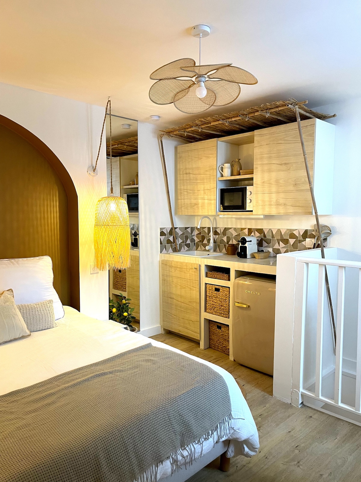 This totally independent and private duplex accommodation with open mezzanine of 70 m² located in the annex of our house, is acclaimed as one of the best bnb on Avignon-Sorgues! You want: enjoy a haven of tranquility, sleep in a king size bed, spread your legs in a beautiful comfy sofa, dinner sitting around a real table: It's here! Price adjusted according to number of people, flexible conditions, friendly welcome, exemplary quality guaranteed!