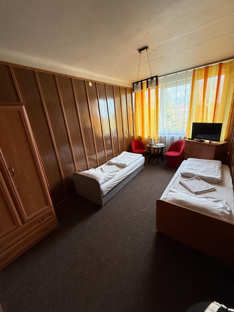 Całe piętro w jednorodzinnej willi.Komfortowo wyposażone. Oryginalny design. Tv kablowa, wifi. Piękny widok na park i kościół.W pełni wyposażona łazienka z prysznicem,stanowisko z krzesłem do make up.W salonie sypialnym jest kącik kawowy z-kawa, herbata cukier ,szklanki ,filiżanki .Jest również lodówka z małym zamrażalnikiem .Okolica bardzo cicha,tylko zabudowa willowa.Doskonałe miejsce na wakacje,biznes.Bezpeczny pobyt - monitorowy teren.