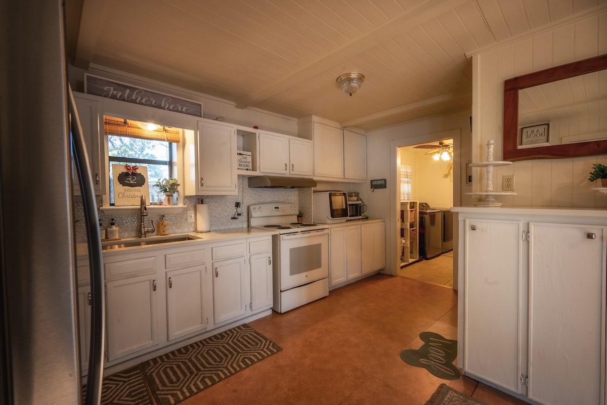 Escape to our cozy waterfront bungalow on Lake Palestine, perfect for a romantic getaway or peaceful weekend by the water. Enjoy coffee in the rocking chairs overlooking the cove, relax in the vintage clawfoot tub, and take in the quiet beauty of the lake. Guests love it here for bird watching, fishing, and simply slowing down. With self check-in and a peaceful setting near Blackburn Dam, it’s an easy East Texas escape!
