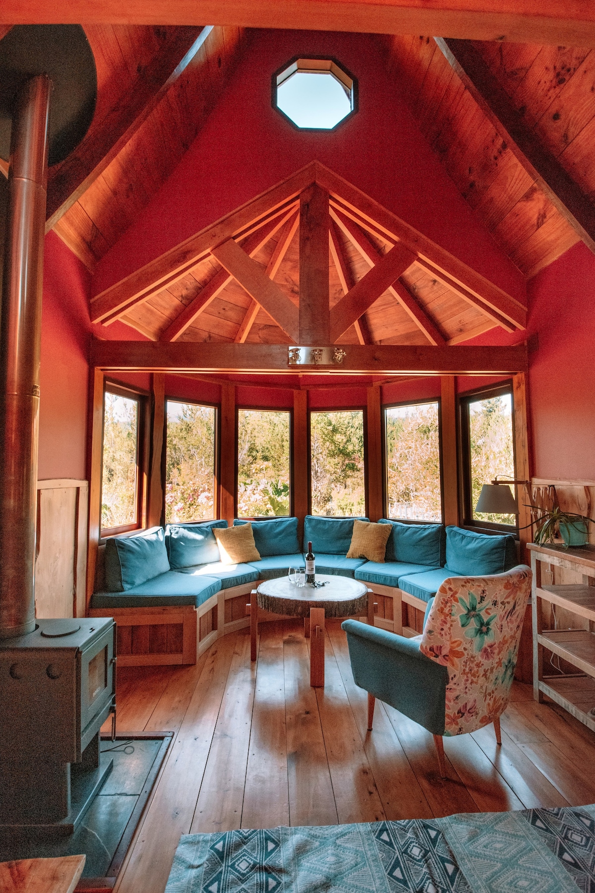With its fairytale-inspired architecture, our solar-powered cabin is located on the heights of Ensenada, on the slopes of the Calbuco volcano. We are offering tourists and travelers, high quality, fully hand-made, accommodation. somewhere to relax and contemplate, far away from consumer society. It is also the ideal place to rethink one’s priorities and experiment, for a given time, what is "going back to the essential".