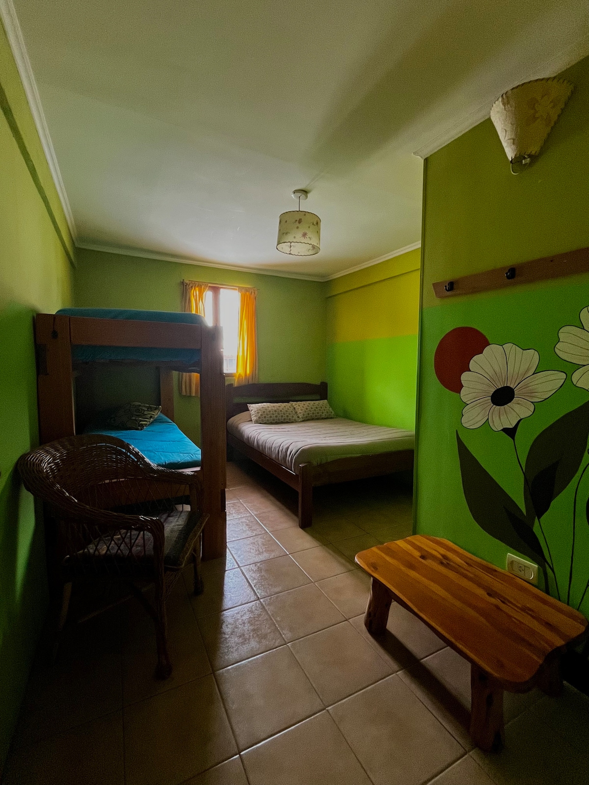 Hostel de montaña ubicado en El Bolsón, céntrico y tranquilo a la vez. Ideal para compartir en familia o con más gente viajera! Te ofrecemos esta habitación familiar privada con baño compartido para que vengas a disfrutar de la tranquilidad de El Bolsón en familia o entre amigos. Ankatu Hostel te espera