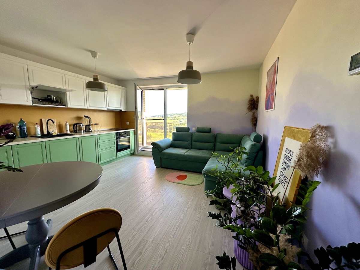 Peaceful, sunlit private room with stunning hill views, in a modern apartment just outside Cluj. The space is lightly lived-in, quiet, and clean, with artistic touches like a hand-painted table and framed artworks. Shared access to a bright living room, fully equipped kitchen, and a balcony perfect for morning coffee or post-festival rest. Fast Wi-Fi, fresh linens, and 25 min by car to Cluj center. Free parking space in the garage. Ideal for a calm getaway.