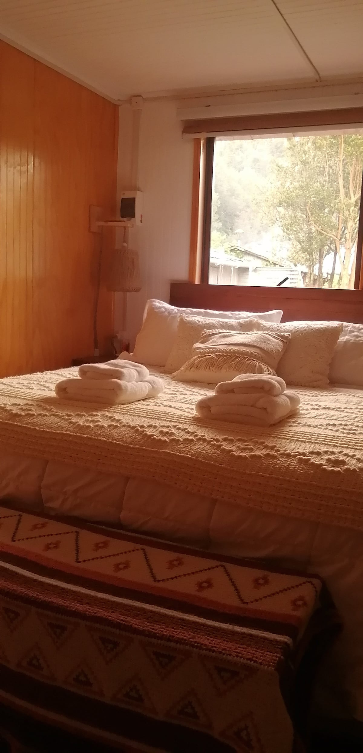 Charming cabin located in the center of Puerto Cisnes, one block from the sea. The cabin is built with local wood and offers all the comforts for the most adventurous traveler. Kitchen equipped with a microwave, electric kettle, gas stove, small refrigerator, NO oven, bathroom with hot water and a hairdryer. On the second floor, there is one bedroom with three single beds and the other bedroom with a double bed and a single bed. Wood heating.